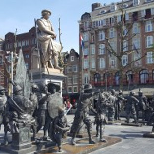 Rembrandtplein (Rembrandt Square) is a small square in central Amsterdam featuring a statue of Rembrandt (der, who else?) surrounded by the Night Watch from one of his most well-known paintings. One of the Night Watch kindly agreed to pose for a pic with me.